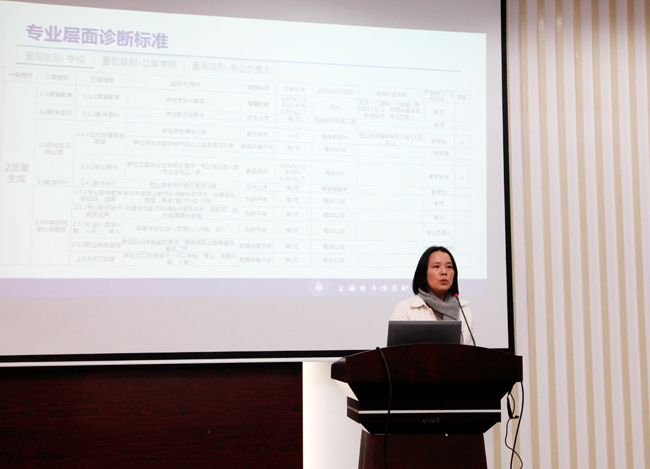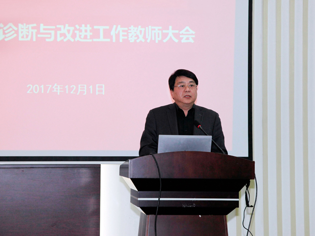 大会首先由杨秀英校长及学校教学诊断与改进委员会成员代表,分模块、全面系统地介绍学校专业诊断与改进工作方案、进程和任务。杨校长强调每位教师都是参与质量引领、内涵发展的主体,要以教学整改为抓手提升办学质量,促进内涵发展。
